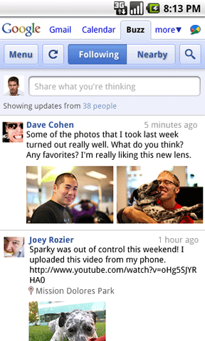 ดู buzz รอบๆ คุณ และติดแท็กข้อความด้วยตำแหน่งของคุณ ขณะนี้มีให้บริการเฉพาะโทรศัพท์ที่ใช้ Android 2.0 ขึ้นไปเท่านั้นGoggles